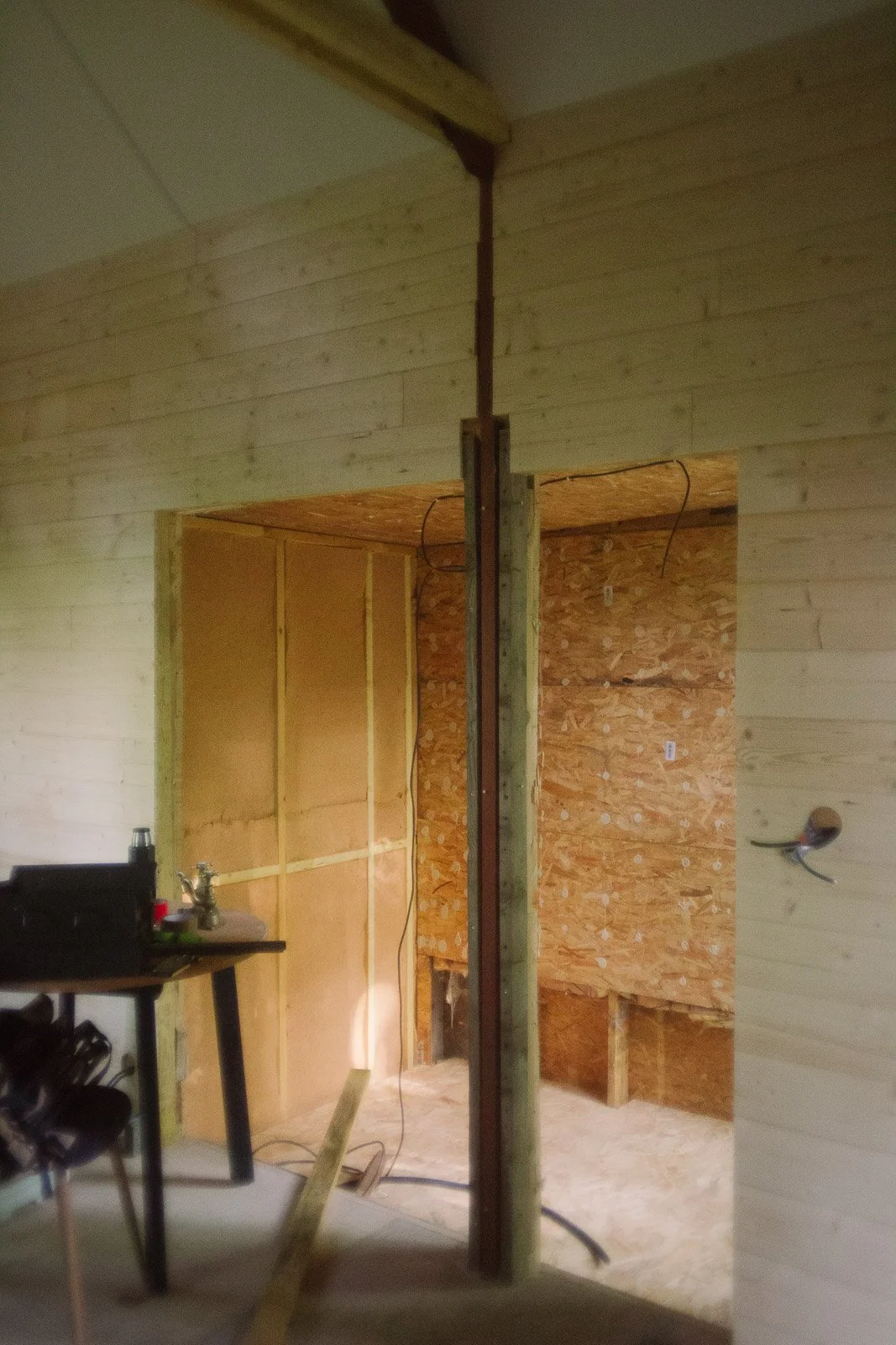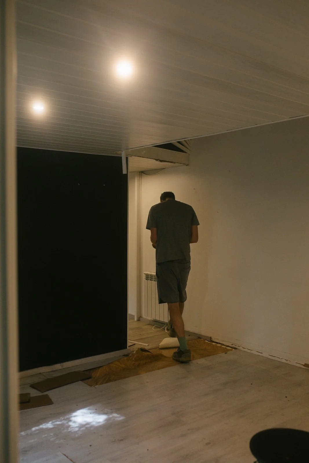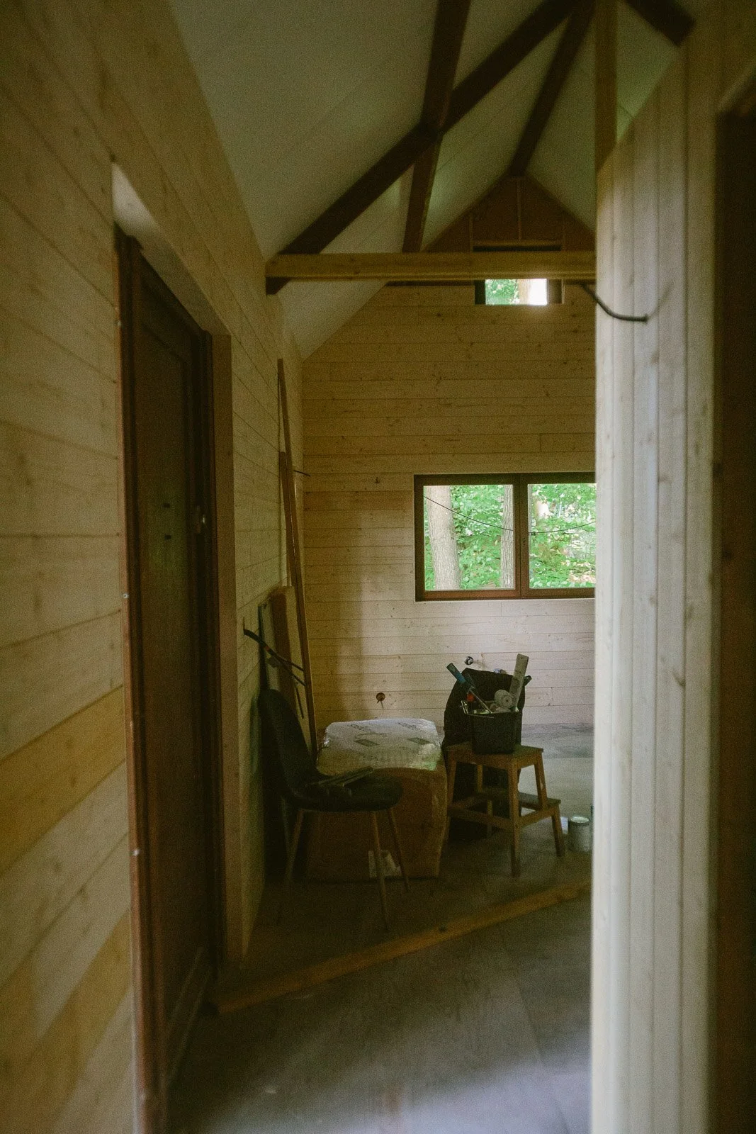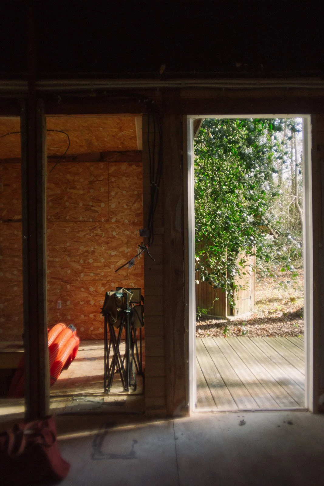 Pour l’anecdote, si ça semble évident aujourd’hui d’avoir voulu “tout casser”, ça ne l’était pas à la première visite. J’avais visité seule, j’avais trouvé ça “en l’état”, avec beaucoup de travail à réaliser comme l’élec, la plomberie, l’aménagement, mais rien d’insurmontable. Et puis vient la deuxième visite, avec Ben. On vérifie des points techniques sur l’avant du chalet (du style : mais comment ça se fait que ce truc n’ait pas encore brûlé ?), je monte sur la terrasse et j’aperçois le volet de gauche entrouvert. Et là tout s’éclaire et je me dis : “mais put*in il y a encore une fenêtre en dessous ?!”. On comprend alors que tout le placo à l’intérieur du chalet a été fixé à même les fenêtres, et que les travaux vont donc être bien plus importants que prévu (je dois l’avouer aujourd’hui - car il y a prescription - de mon côté je sautais intérieurement de joie car j’avais l’excuse PAR-FAI-TE pour justifier le fait de tout démonter et de passer sur un intérieur en bois comme j’en rêvais).